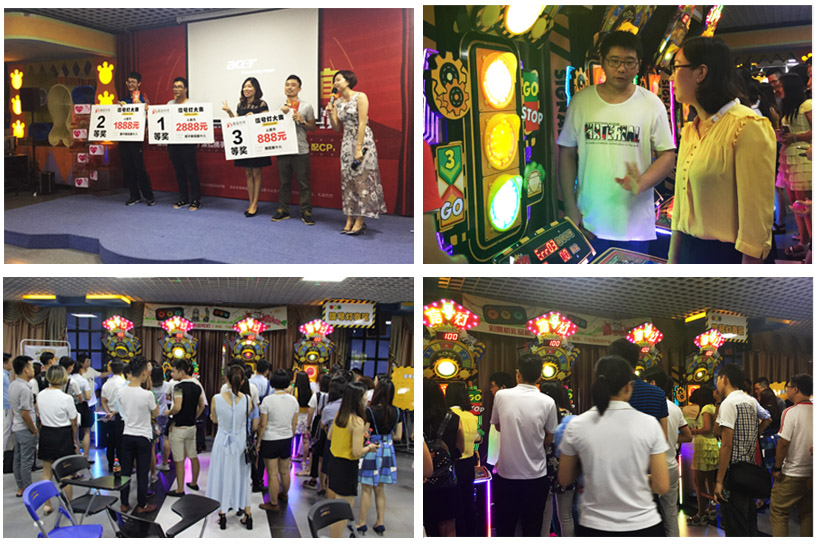 比賽的第二個環(huán)節(jié)是信號燈大賽,分初賽和決賽。初賽以4人為一組,誰先點亮燈誰就獲勝;決賽是參賽者在限定的5分鐘之內(nèi),點亮的燈最多者獲勝;如果燈數(shù)一樣則進行加時賽。場面火爆,玩家都驚呼信號燈這款產(chǎn)品好玩刺激!