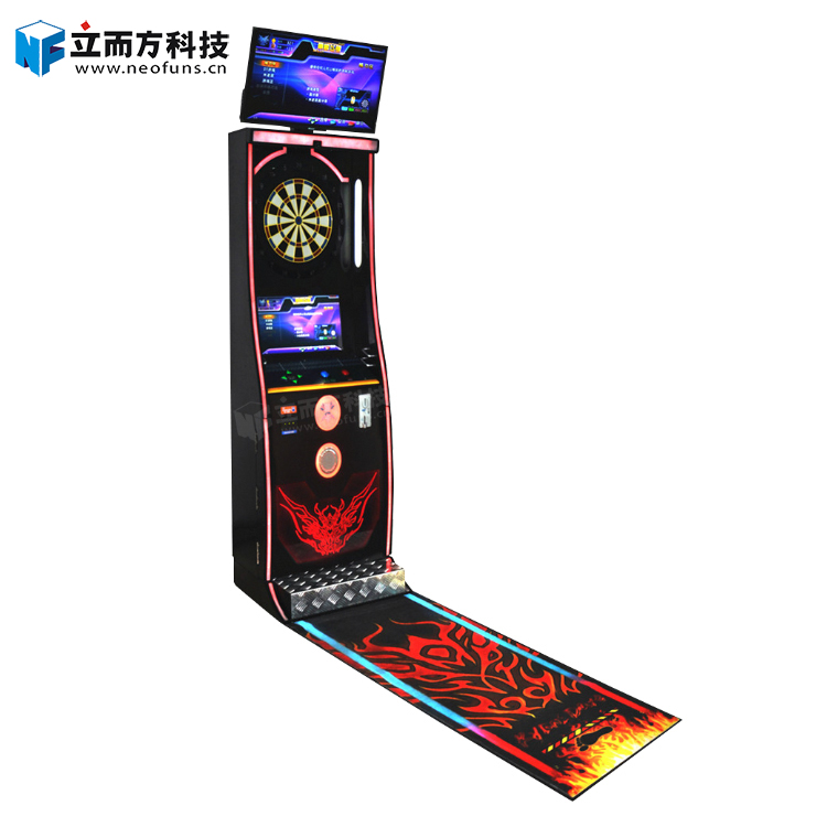 風馳飛鏢機是由立而方自主研發(fā)自主生產(chǎn)的一款運動娛樂型機臺,場地聚集人氣必備機臺。造型簡潔獨特,色彩賞心悅目。風馳飛鏢機游戲玩法簡單,內置高分賽、大轉盤等多種不同游戲玩法,刺激有趣。投幣后選擇游戲類型開始游戲,鏢盤外圍標有對應分數(shù),內環(huán)還設有對應的兩倍區(qū)和三倍區(qū),玩家通過投擲飛鏢至鏢盤,獲得相應分數(shù)。風馳飛鏢機采用軟式飛鏢,安全性高,使用國際標準鏢盤和游戲規(guī)則。風馳飛鏢內置游戲可以全球聯(lián)網(wǎng)對決,配有兩個液晶顯示屏,不管是遠觀還是近看,不放過任何一個精彩的瞬間,當玩家連續(xù)三次命中同一區(qū)域或者三次分數(shù)超過50分均有特殊動畫音效,給玩家?guī)泶碳んw驗。風馳飛鏢機的特殊休閑模式,非常適合當下年輕人鍛煉身體協(xié)調能力,一種高端優(yōu)雅的休閑運動。